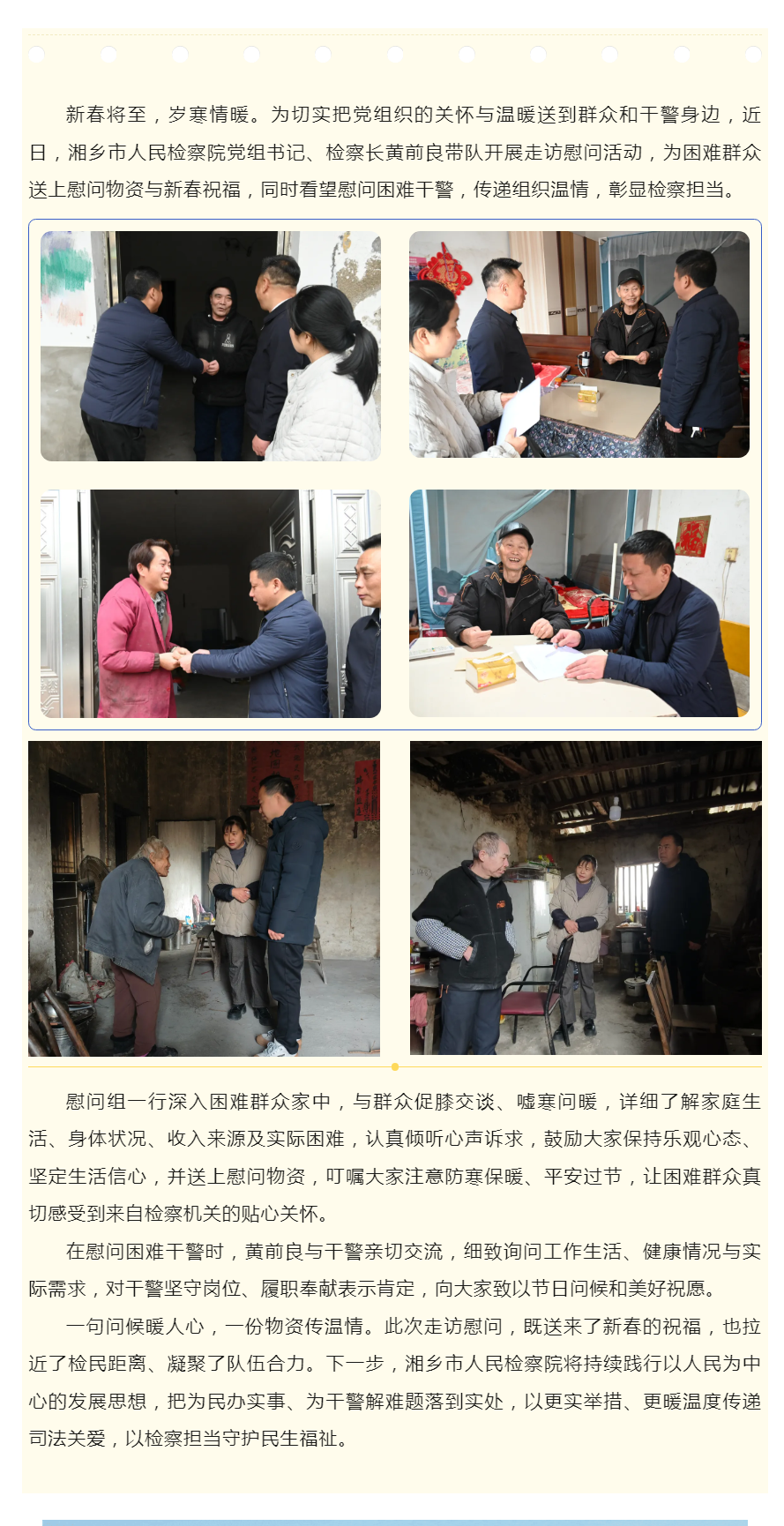 检察长带队走访慰问困难群众与困难干警